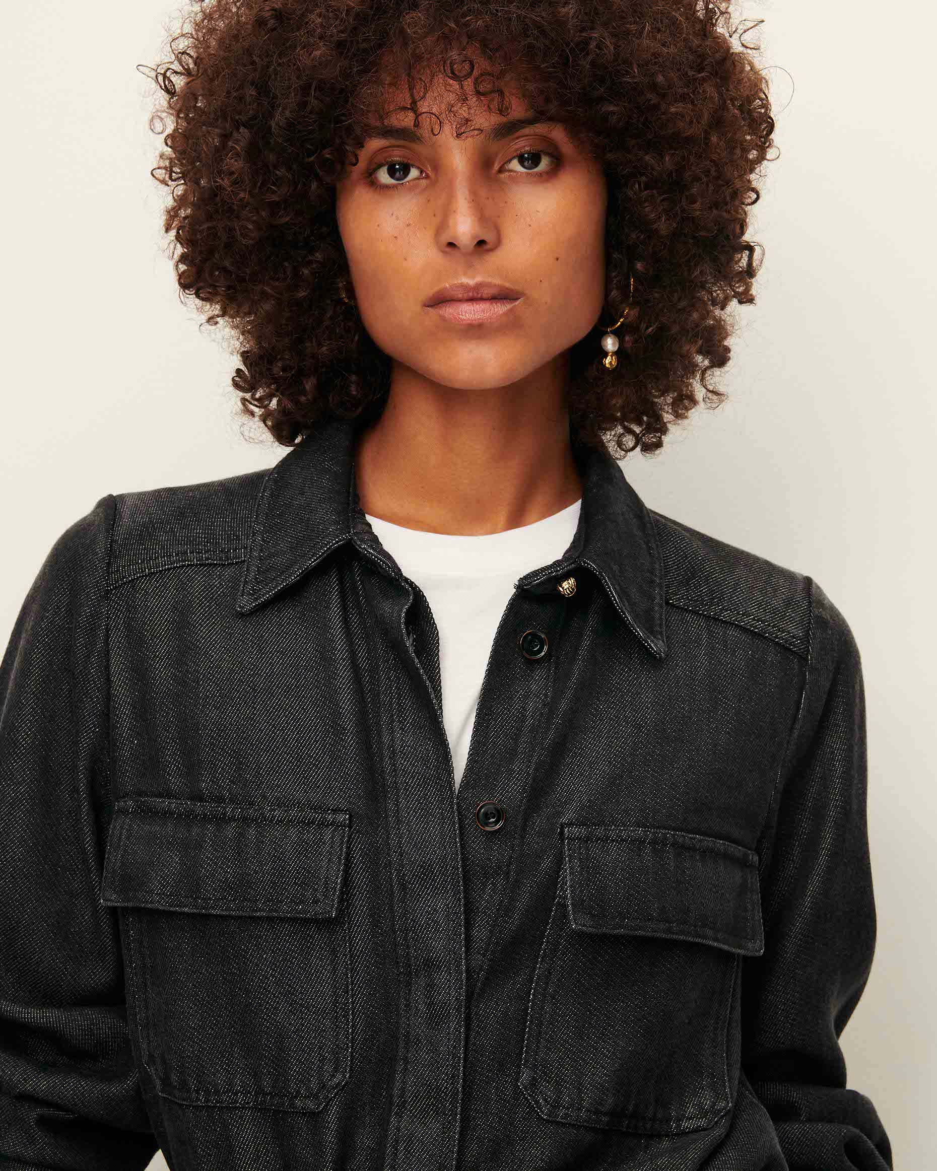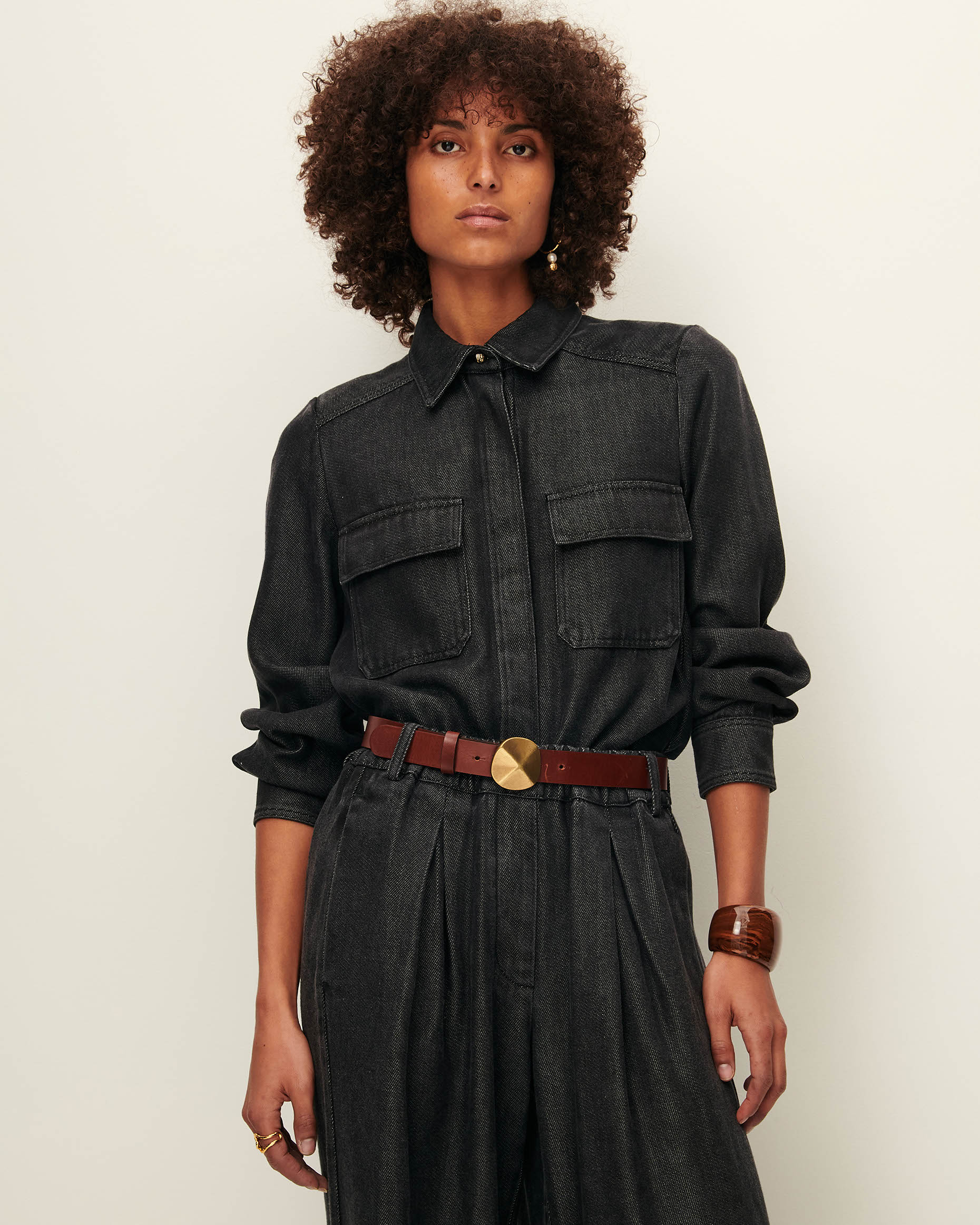This garment is made from TENCEL™ Lyocell, a fiber sourced from certified sustainably managed and renewable wood and transformed through a process that limits pollution and toxic discharges.TENCEL™ is a registered trademark of Lenzing AG.Miko is 176 cm and is wearing an S.Concealed button closure with a jewel button at the collar.Long sleeves with pleat details at the cuffs.Shoulder yokes front and back.Patch pockets with flaps at the front.Pleat detail on the back.100% Lyocell Made in Tunisia