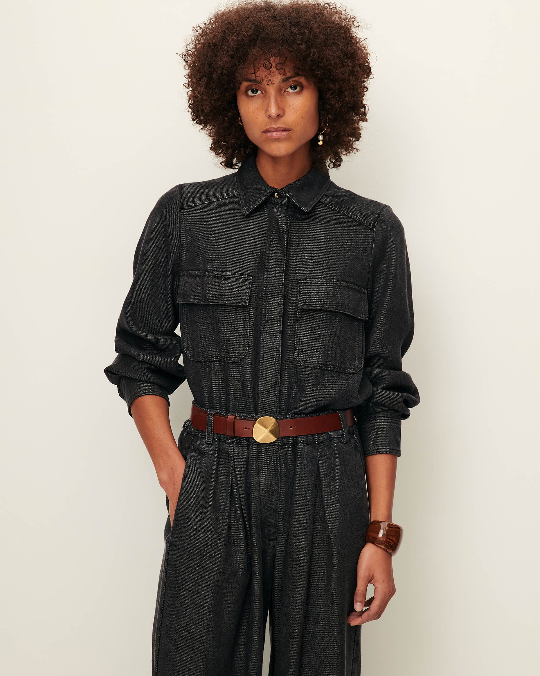 Close-fitting shirt with patch pockets in a fluid lyocell denim fabric, woven in Spain.